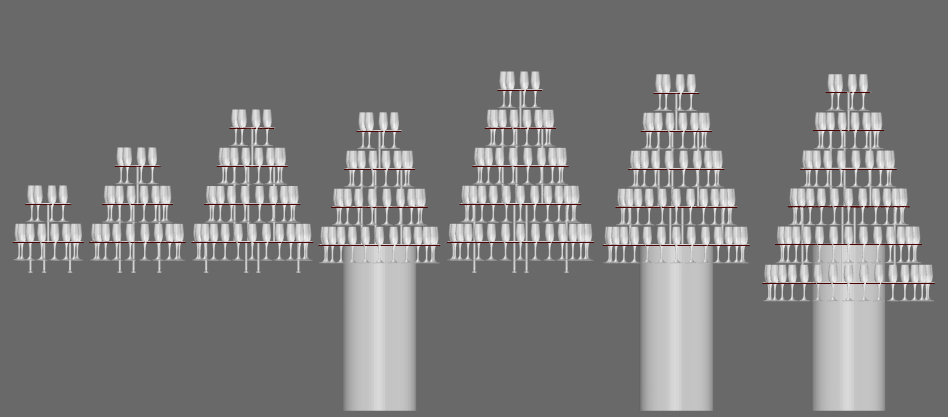 Configurations to hold: 21, 39,63,91 and 123 Champagne Flutes.